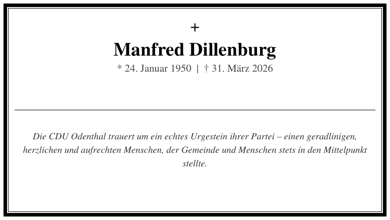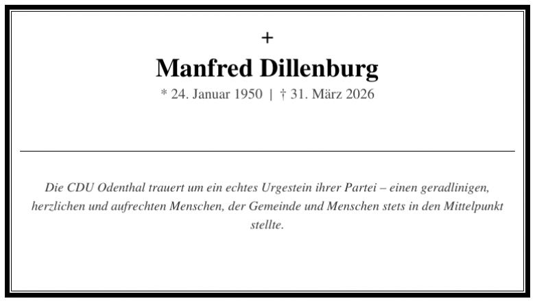 Die CDU Odenthal trauert um ein echtes Urgestein ihrer Partei – einen geradlinigen,